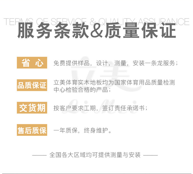 立美运动木地板贴心的服务体系、管理思维模式以及发展规划,将为更多体育场馆工程商和甲方打造精品运动空间,让更多热爱动动的人们能够在运动木地板上释放激情,体验快乐。这就是立美运动木地板的使命。